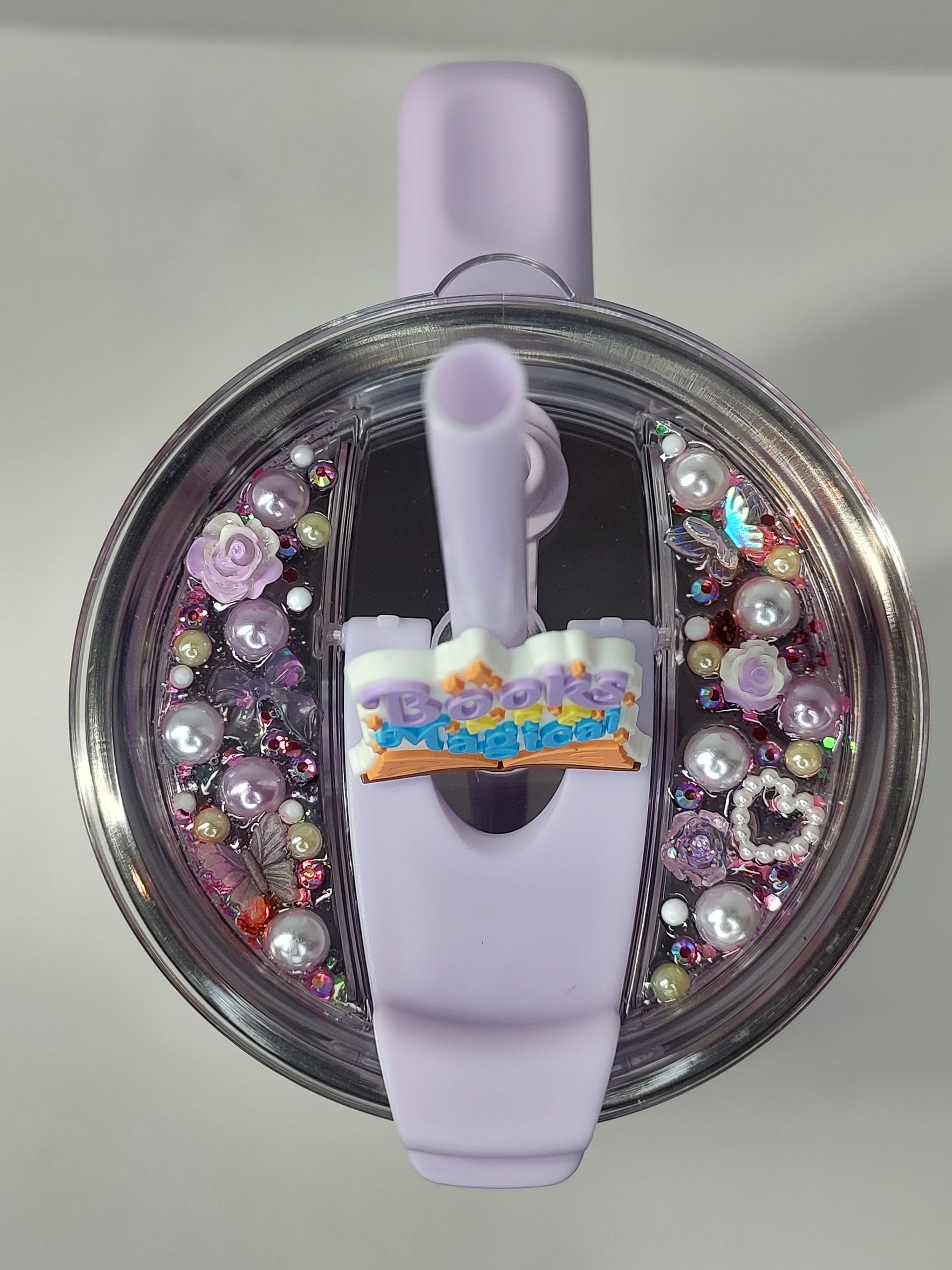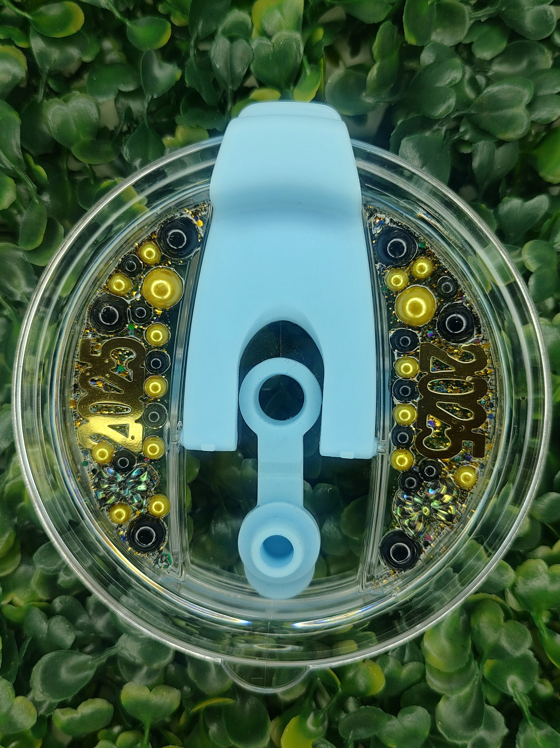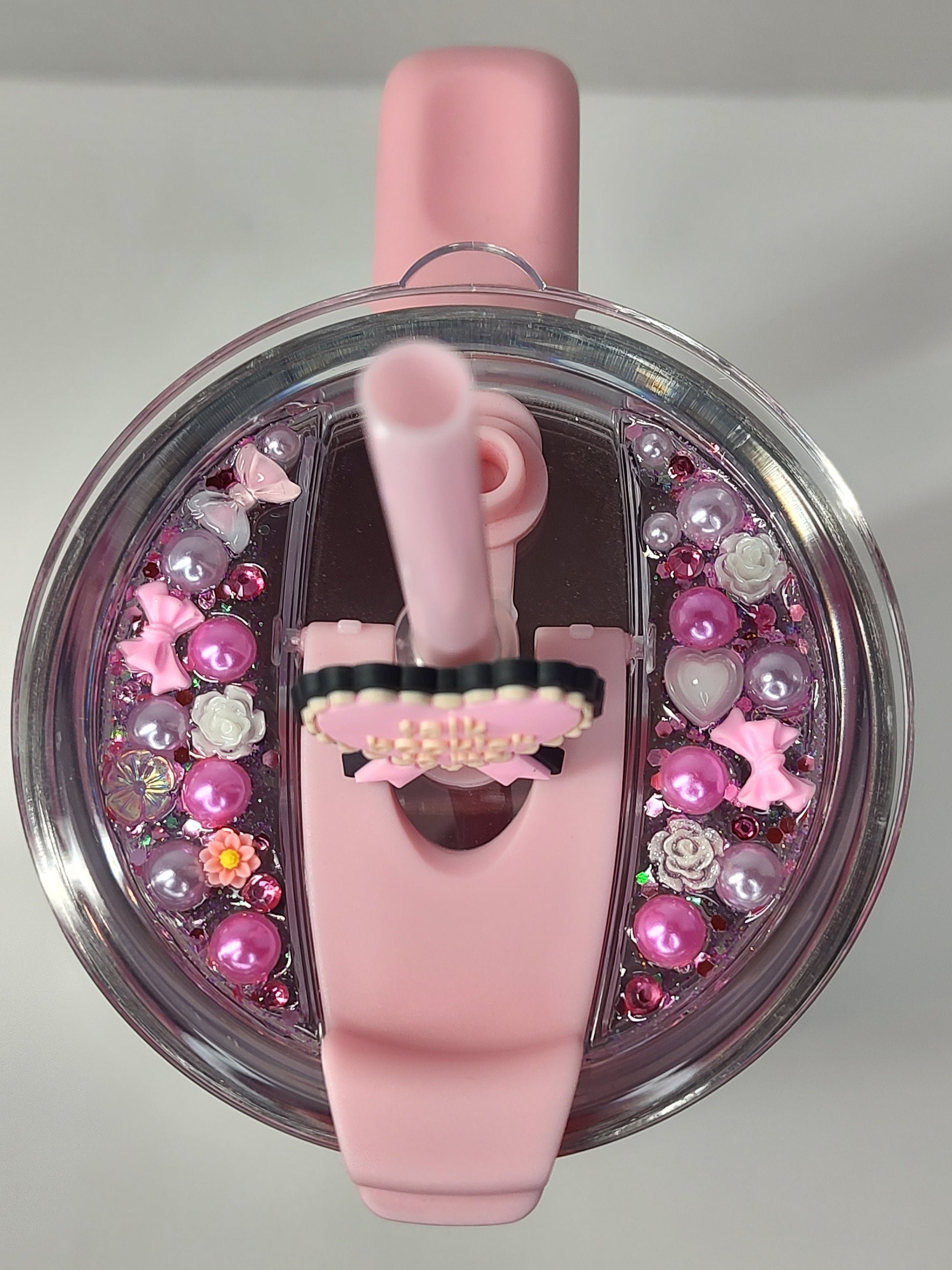This customized/decorated lid is the perfect addition to any cup, adding a touch of personalization and style to your drink. Bring your beverage to the next level with this unique and customized lid.