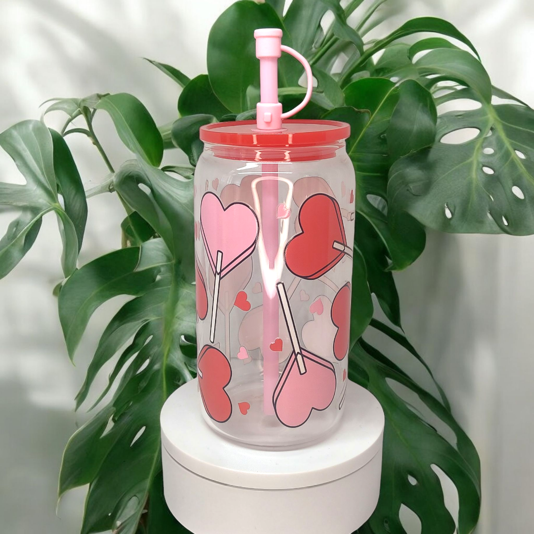 16oz Glass Cup "Lollipop Hearts"